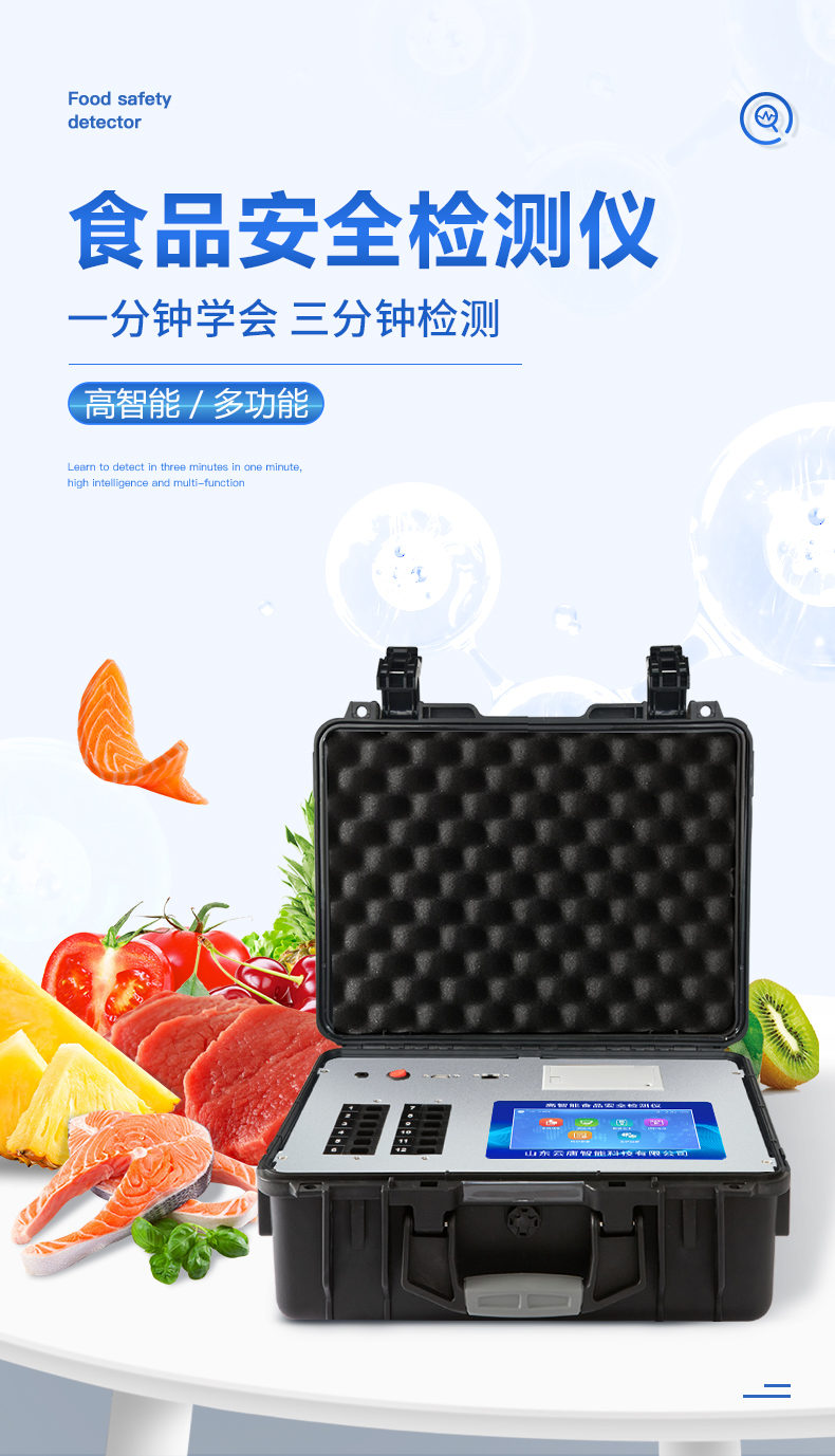 多功能食品安全檢測(cè)儀可快速檢測(cè)200多項(xiàng)目,包含非食用化學(xué)物質(zhì)、濫用食品添加劑、農(nóng)藥殘留、獸藥殘留、重金屬、病害肉、營(yíng)養(yǎng)強(qiáng)化劑、抗生素類殘留、激素類殘留、真菌毒素類殘留、化學(xué)類殘留等現(xiàn)場(chǎng)的定性定量檢測(cè)。該多功能食品安全檢測(cè)儀為集成化食品安全快速檢測(cè)分析設(shè)備,廣泛應(yīng)用于市場(chǎng)監(jiān)管局、檢測(cè)中心、衛(wèi)生監(jiān)督部門、農(nóng)業(yè)部門、院校及各單位食堂、食品肉產(chǎn)品深加工企業(yè)、商超市場(chǎng)、司法部門、餐飲機(jī)構(gòu)、養(yǎng)殖場(chǎng)、屠宰場(chǎng)、檢驗(yàn)檢疫部門等單位使用。