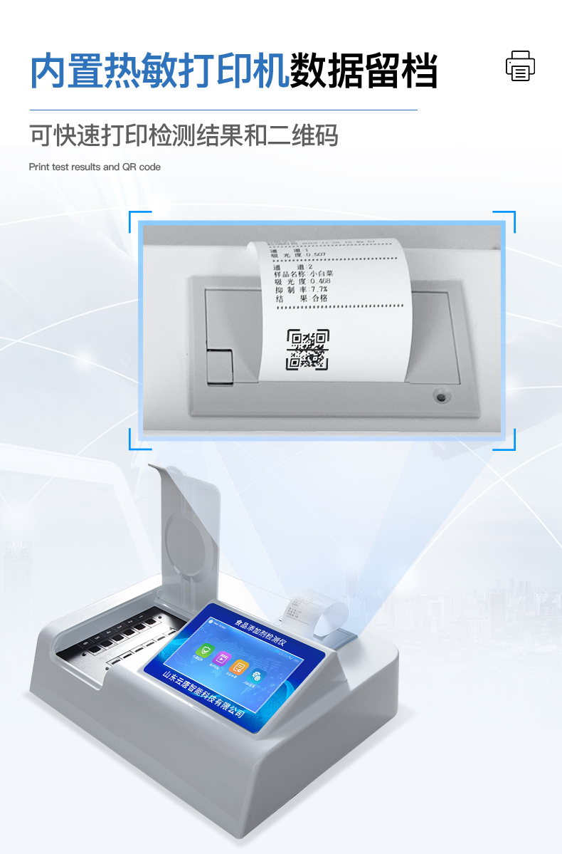 3、新一代高速熱敏打印機,檢測完成可自動打印或批量打印檢測報告和二維碼。