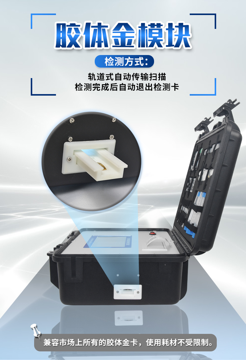 七寸彩屏全觸摸輸入,支持手寫功能支持WIFI,支持3G、4G;支持金標(biāo)項目檢測定性檢測,結(jié)果可顯示樣品陰陽性結(jié)果內(nèi)置智能操作系統(tǒng)軟件內(nèi)置大容量存儲數(shù)據(jù)庫,可隨時分類查詢已測項目;☆數(shù)據(jù)可局域網(wǎng)和互聯(lián)網(wǎng)數(shù)據(jù)上傳,可構(gòu)建食品安全監(jiān)管系統(tǒng)平臺,支持LIMS  系統(tǒng),內(nèi)置USB接口,可擴展外設(shè);☆自動精準(zhǔn)識別CT線位置,糾錯范圍可達(dá)±3mm;支持金標(biāo)項目檢測定性檢測,結(jié)果可顯示樣品陰陽性結(jié)果;檢測響應(yīng)時間:< 3S讀數(shù)精度:CV<1% ;12V低壓電源供電,便攜式設(shè)計,適合野外,車載或室內(nèi)等各種場所使用