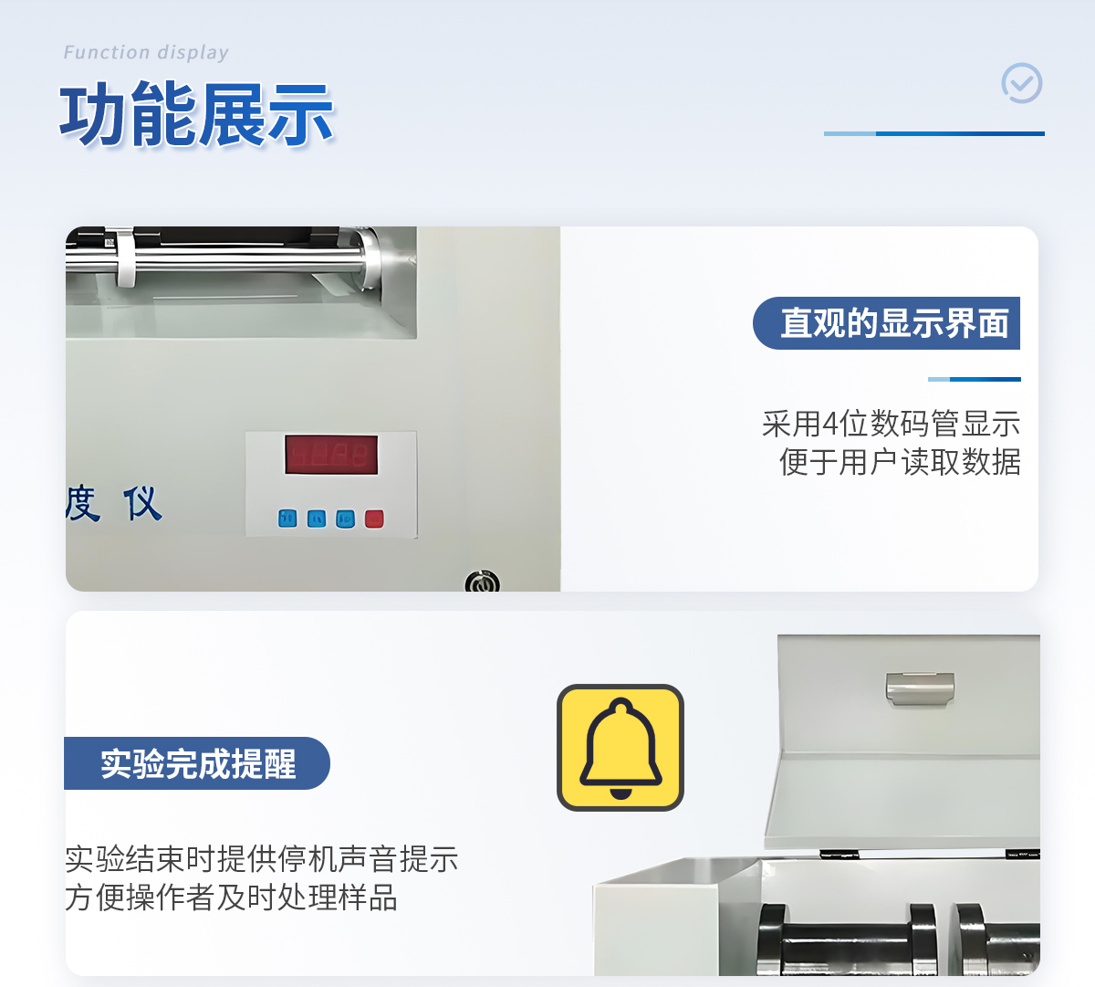 4、實驗結(jié)束提示:停機聲音提示