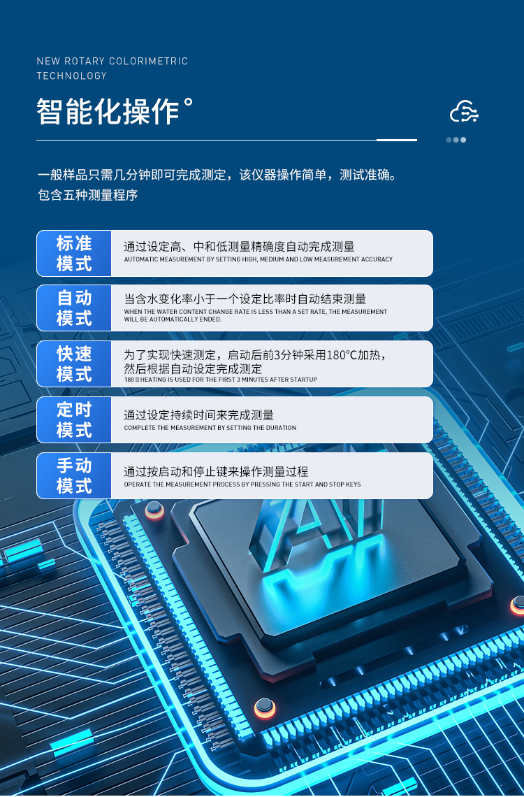 環(huán)狀的鹵素?zé)舸_保樣品得到均勻加熱,操作簡(jiǎn)便、測(cè)量準(zhǔn)確。鹵素水分測(cè)定儀在測(cè)量樣品重量的同時(shí),儀器采用環(huán)形管鹵素加熱方式,快速干燥樣品,在干燥過(guò)程中,水分儀持續(xù)測(cè)量并即時(shí)顯示樣品丟失的水分含量%,干燥程序完成后,*終測(cè)定的水分含量值被鎖定顯示。與國(guó)際烘箱加熱法相比,鹵素加熱可以在高溫下將樣品均勻地快速干燥,樣品表面不易受損,其檢測(cè)結(jié)果與國(guó)標(biāo)烘箱法具有良好的一致性,具有可替代性,且檢測(cè)效率遠(yuǎn)遠(yuǎn)高于烘箱法。智能化操作,一般樣品只需幾分鐘即可完成測(cè)定。該儀器操作簡(jiǎn)單,測(cè)試準(zhǔn)確,顯示部分采用液晶顯示屏-使屏幕更加清晰明亮,示值清晰可見(jiàn),分別可顯示水分值,樣品初值,終值,測(cè)定時(shí)間,溫度初值,*終值等數(shù)據(jù),并具有與計(jì)算機(jī),打印機(jī)連接功能、符合GLP規(guī)范的打印數(shù)據(jù)輸出。