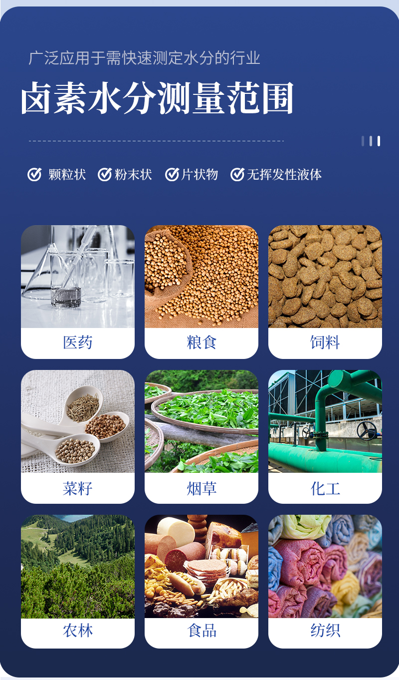 鹵素水分儀應(yīng)用于一切需要快速測定水分的行業(yè),只要是顆粒狀、粉末狀、片狀物、無揮發(fā)性液體均可測量,如:糧食、化工、醫(yī)藥、塑膠原料、橡膠、煙草、茶葉、紡織、肉類、食品、淀粉、飼料、煤炭、型砂、污水污泥、乳業(yè)等等2025-11-07