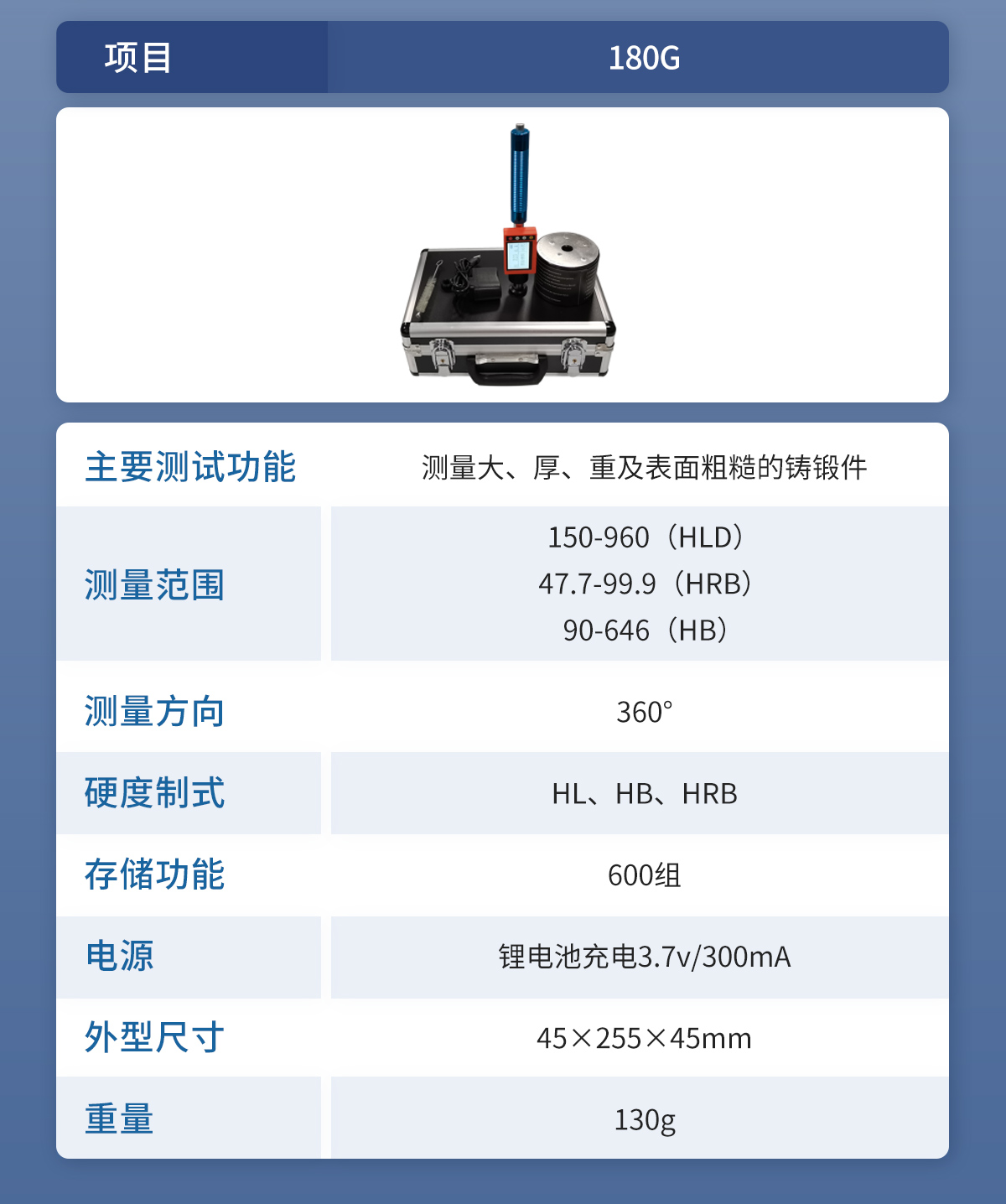 | 標(biāo)準(zhǔn)配置 | 主機、支撐環(huán),HRC標(biāo)準(zhǔn)硬度塊、充電器、尼龍刷 |