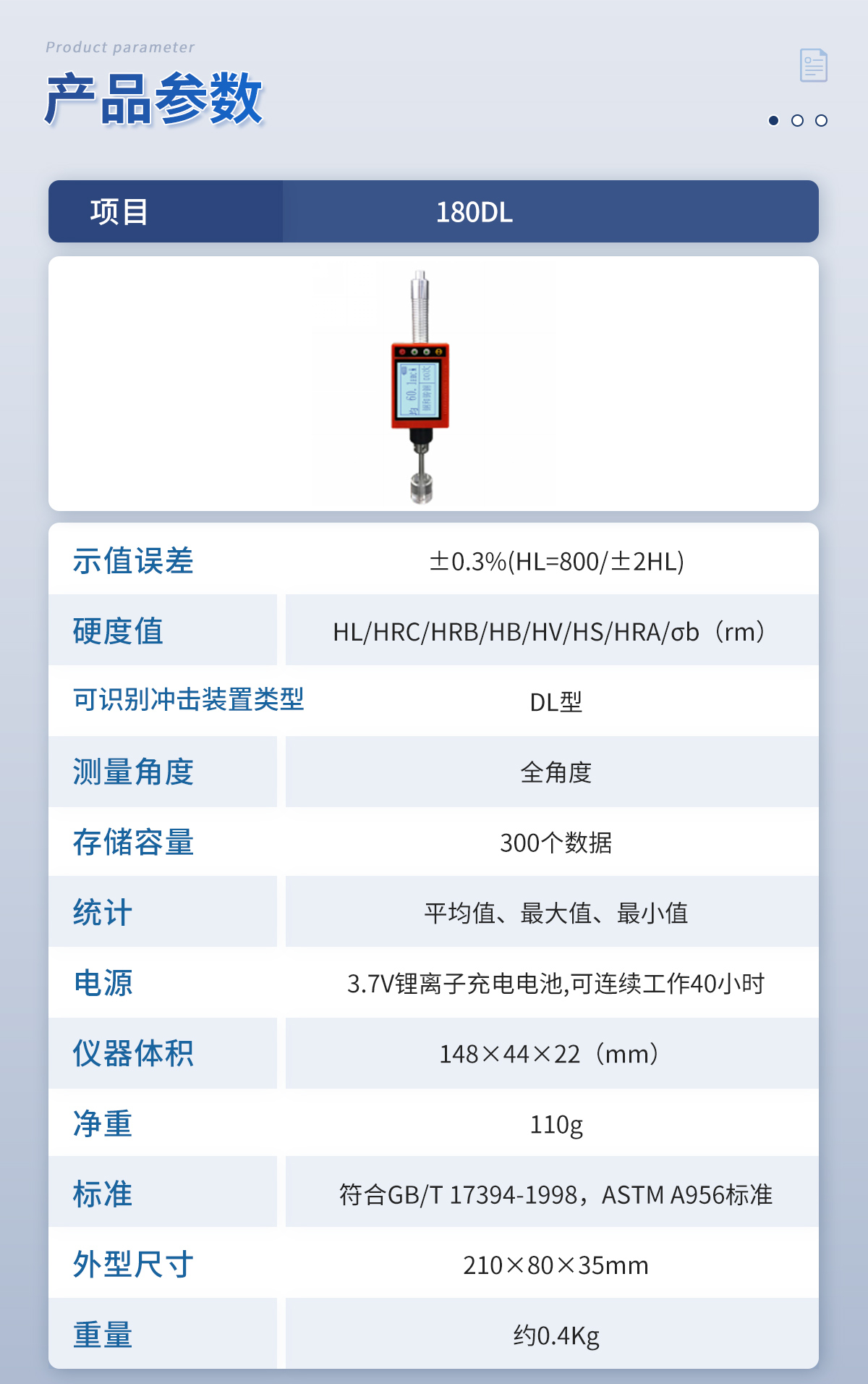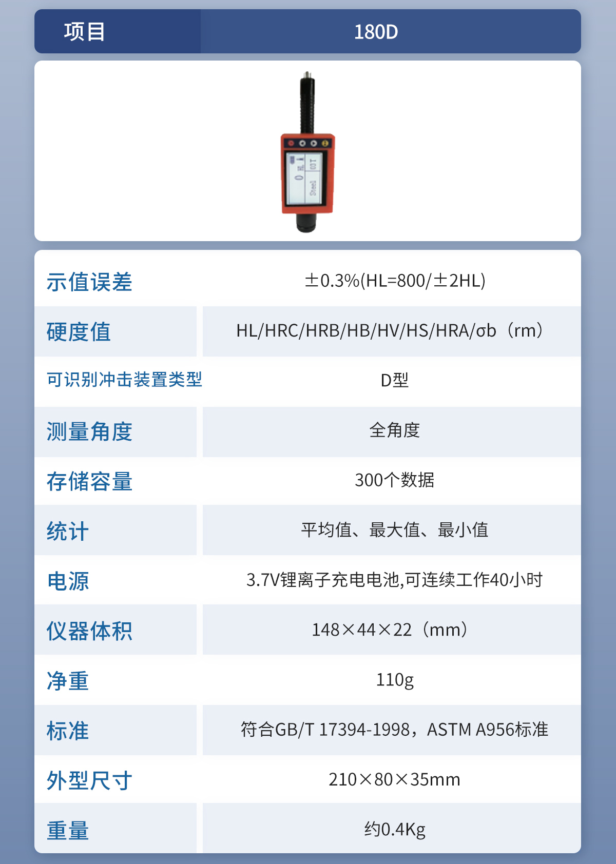 筆式里氏硬度計 YT-180D 技術(shù)參數(shù)
