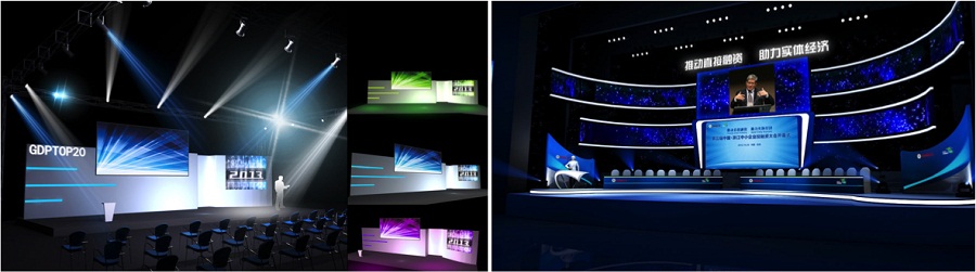 4)舞美設(shè)計,舉辦會議少不了投影儀或LED視頻投放設(shè)備,根據(jù)會議議程特點設(shè)計最適合的舞臺舞美。