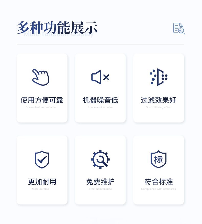 | 1.使用方便、可靠。 | 2.過濾后奶液可繼續(xù)用于生產(chǎn),降低成本。 | 3.噪音低,過濾效果好。 | 4.免維護設(shè)計,避免皮帶維護麻煩。 | 5.耗材成本低。 | 6.改進電機,更耐用。 | 7.配套齊全,使用便捷。 |