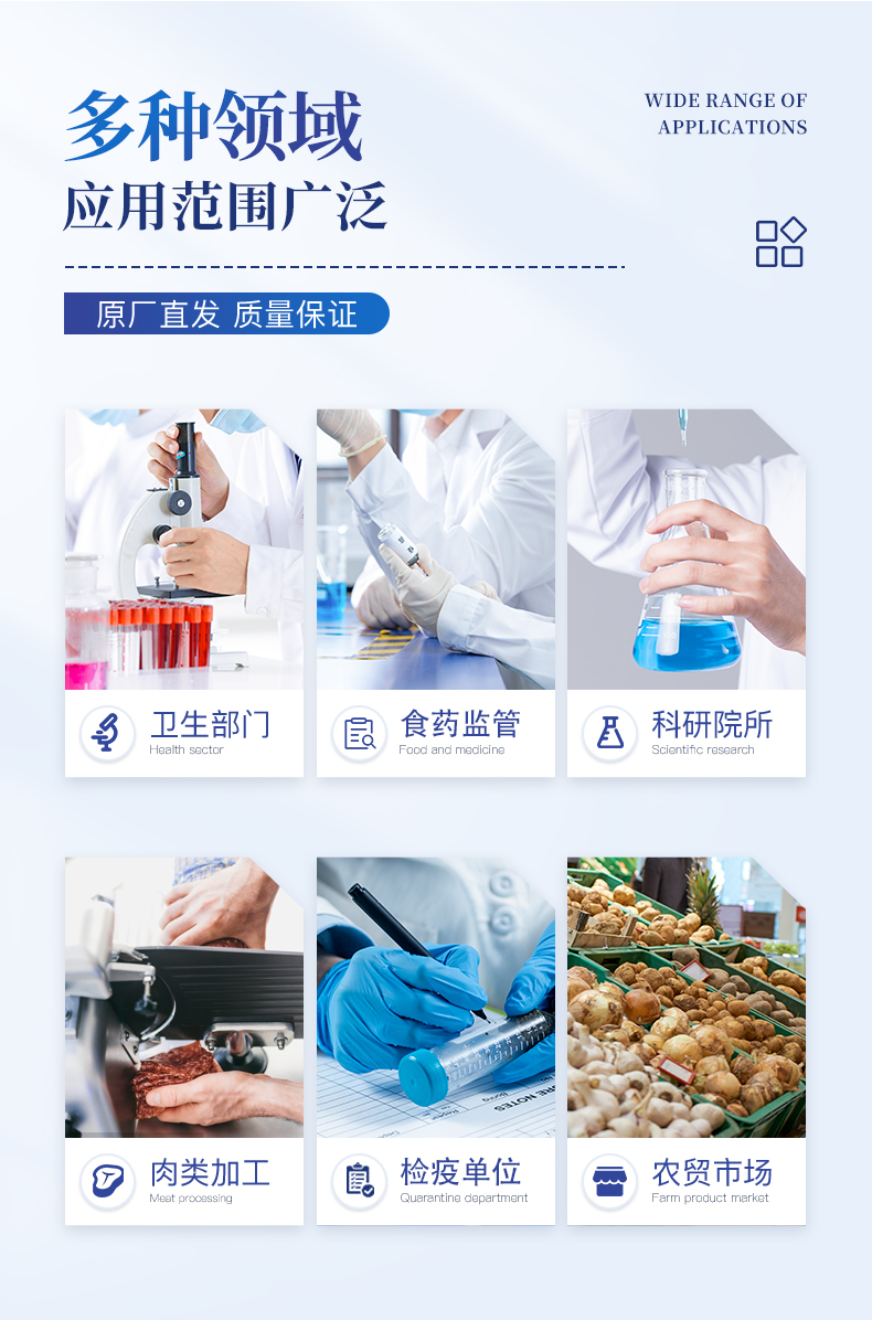 抗生素殘留檢測儀廣泛應(yīng)用于食藥監(jiān)局、衛(wèi)生部門、農(nóng)業(yè)部門、養(yǎng)殖場、屠宰場、食品肉產(chǎn)品深加工企業(yè)、檢驗(yàn)檢疫部門等單位使用。