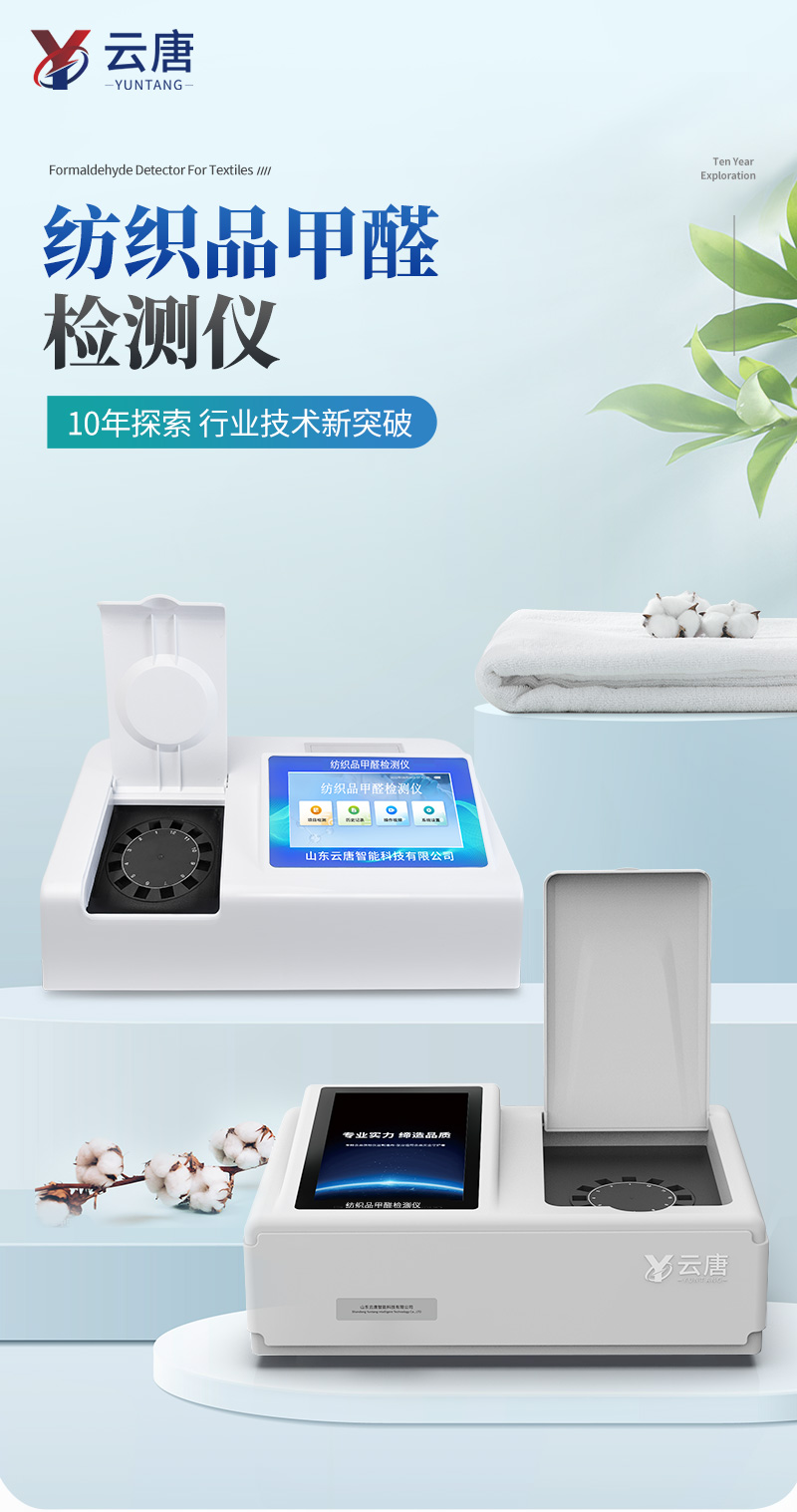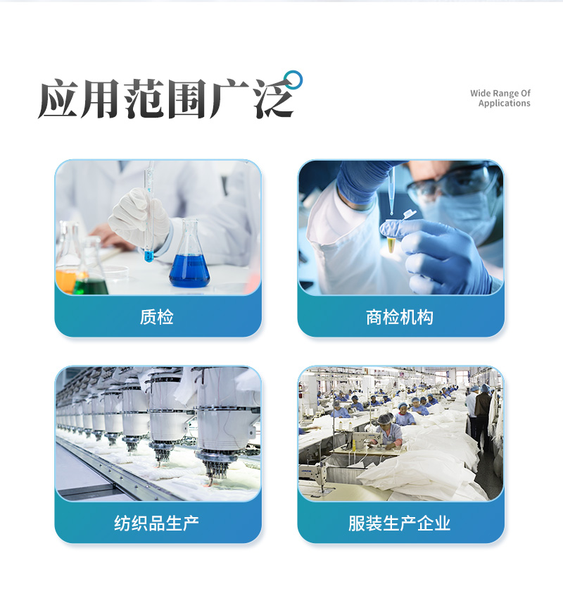 該紡織品甲醛檢測設(shè)備滿足紡織品甲醛含量檢測的中國標(biāo)準(zhǔn)《國家紡織產(chǎn)品基本安全技術(shù)規(guī)范》(GB 18401-2010)、《紡織品.甲醛的測定.第1部分:游離和水解的甲醛(水萃取法)》(GB/T 2912.1-2009), 適合各種紡織品、服裝等的甲醛含量檢測。