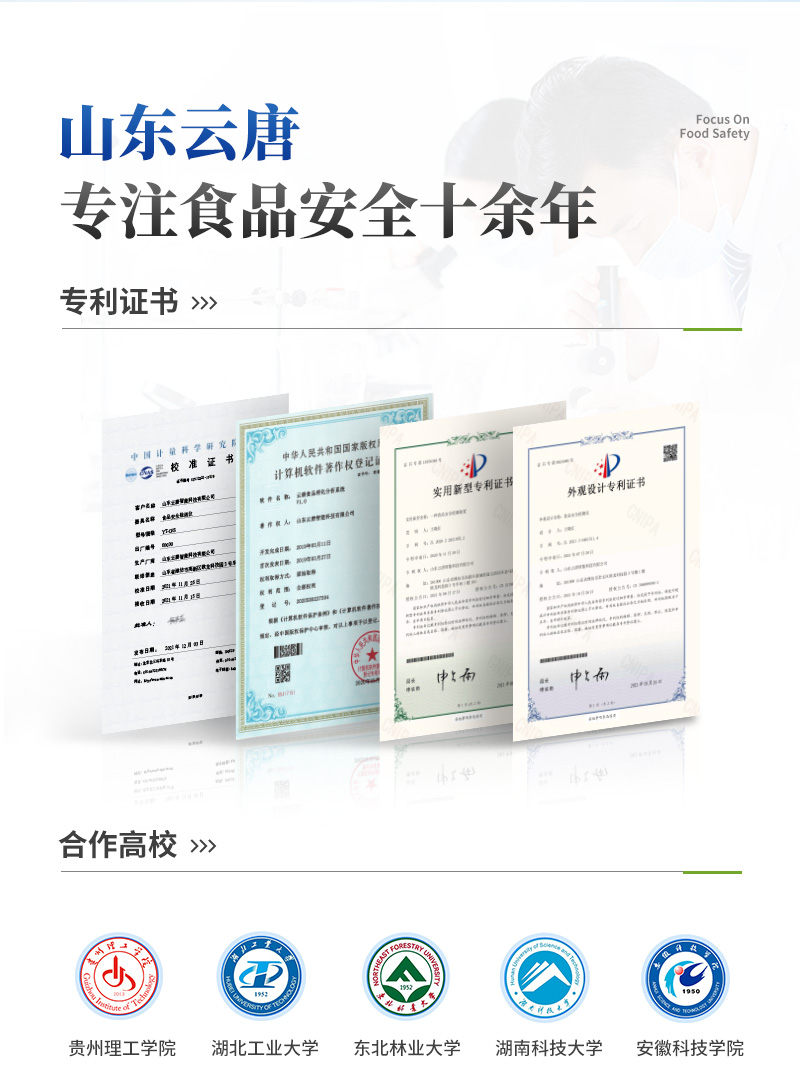 | 該儀器采用ARM Cortex-A7,RK3288/4核處理器,搭配運行安卓智能操作系統(tǒng),集實驗操作,分析結(jié)果,打印報告等功能于一體,使用方便,性能更強(qiáng)。 | 儀器采用7.1英寸液晶觸摸屏,單機(jī)即可操作,無需連接外部顯示設(shè)備或控制裝置。 | 設(shè)備具有12個檢測通道,可一次性檢測11個樣品,效率更高。 | 儀器采用精密旋轉(zhuǎn)比色池設(shè)計,使用同光源校準(zhǔn)精度,檢測結(jié)果更為準(zhǔn)確**。 | 設(shè)備具有數(shù)據(jù)存儲功能,設(shè)備可以存儲數(shù)據(jù)100000組,可在屏幕上直觀查看歷史數(shù)據(jù),可導(dǎo)出數(shù)據(jù)。 | 設(shè)備自帶打印功能,可對樣品信息及檢測結(jié)果無限次隨意打印。 | 該儀器模塊化高度集成,同步設(shè)有數(shù)字化管理模塊、無線通訊模塊,可將檢測結(jié)果進(jìn)行分析,直接上傳至數(shù)據(jù)平臺,實現(xiàn)數(shù)據(jù)共享,方便后期進(jìn)行數(shù)據(jù)分析與統(tǒng)計。 | 儀器采用高度智能化系統(tǒng),儀器自動對檢測結(jié)果與國標(biāo)限量值進(jìn)行對比,自動判定樣品是否合格,結(jié)果更為直觀。 | 本設(shè)備可以針對檢測樣品信息,對每個通道屬性單獨進(jìn)行編輯,例如受檢單位,檢測人員等。 | 設(shè)備具有過壓保護(hù)、防靜電干擾、防磁場干擾等功能 | 該設(shè)備可進(jìn)行技術(shù)性遠(yuǎn)程升級,更新程序,無需返廠,并且后期我司將持續(xù)免費更新系統(tǒng)版本,降低使用成本及運輸損耗風(fēng)險。 |