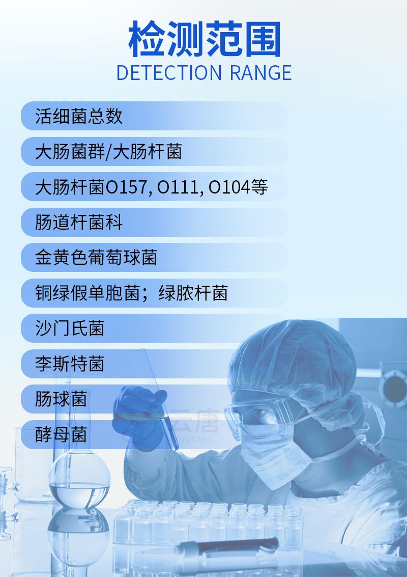 1. 食品:肉類、果蔬、奶制品、主食、調(diào)味料、飲料、半處理類食品以及飲料等,農(nóng)產(chǎn)品及相關(guān)加工公司;2.水質(zhì):生活飲用水、自然界水源、制水廠;3. 表面:潔凈臺、餐具/ 器具表面;4. 其他:藥品、化妝品等;5. HACCP( 危害分析和關(guān)鍵控制點(diǎn)) 診斷,以及適用于災(zāi)難現(xiàn)場、臨場、抽檢、大型會議等微生物安全快速檢測。