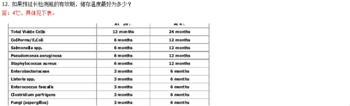 答:對檢測樣本自身的溫度沒有限制,檢測樣本中微生物,請嚴(yán)格遵照所檢測微生物對應(yīng)的孵育溫度,依然根據(jù)對照表。