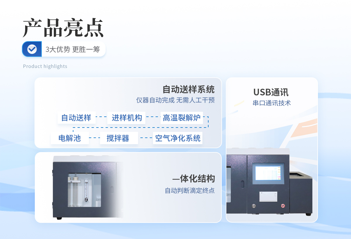 | 1、 手自一體化自動送樣系統(tǒng),將自動送樣、進(jìn)樣機(jī)構(gòu)、高溫裂解爐、電解池、攪拌器、空氣凈化系統(tǒng)等部件巧妙地結(jié)合在一起,使儀器結(jié)構(gòu)更加緊湊,更加合理、更加穩(wěn)定??稍诰€式插隊添加樣品,無需人工送樣,自動化程度高,若樣品少也可采用手動送樣方式。 | 2、采用—體化結(jié)構(gòu),自動判斷滴定終點,縮短了實驗時間。所有關(guān)鍵部件均采用了設(shè)計理念及進(jìn)行了嚴(yán)格的控制,確保儀器能長時間穩(wěn)定運行。 | 3、采用特別的數(shù)據(jù)采集網(wǎng)絡(luò)及多級校正技術(shù),確保高、中、低硫含量測試結(jié)果的準(zhǔn)確性。 | 4、送樣機(jī)構(gòu)采用電子電解液分子濃度采集電路,可靠性高,不會產(chǎn)生過電解現(xiàn)象。 | 5、串口通訊技術(shù),可采用usb通訊,兼容性好,具有廣泛的適用性。 | 6、自由設(shè)置送樣時間及預(yù)置溫度,采用進(jìn)口霍爾元件控制送樣位置。 | 7、采用剛玉瓷舟,減少卡樣的可能。一次可放1-24個樣由程序控制實現(xiàn)自動升溫、控溫、送樣、測定,結(jié)果自動存盤、自動打印,并可中途在線式插隊添加試樣,大大地提高了工作效率,真正實現(xiàn)無人值守; | 8、采用庫侖滴定法進(jìn)行測定,測定時間可根據(jù)不同試樣自動判斷,速度優(yōu)于艾士卡重量分析法和高溫燃燒中和法; |