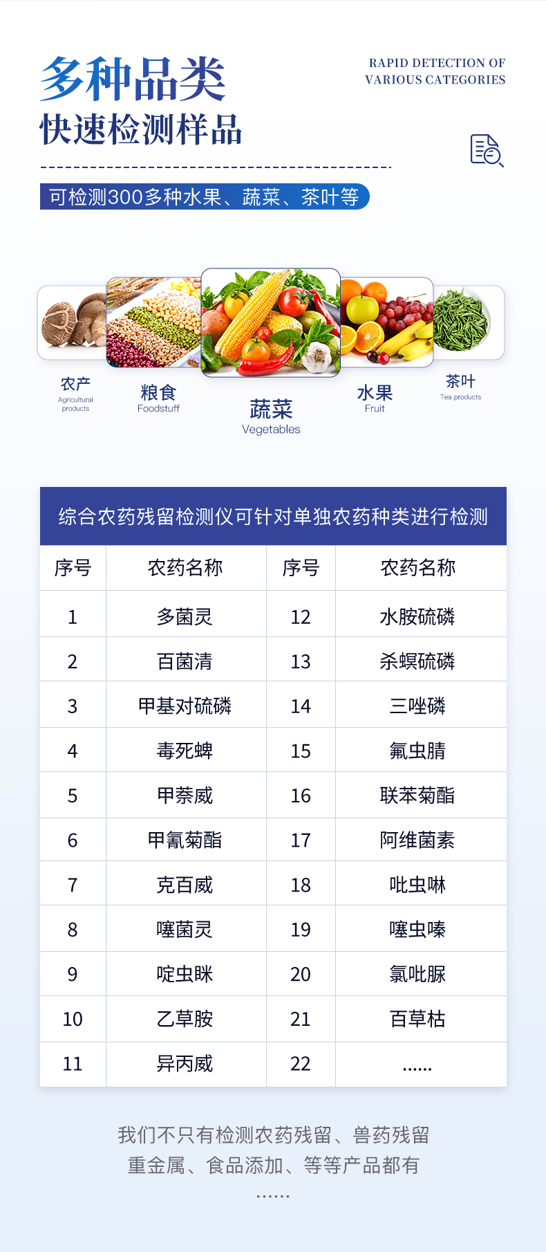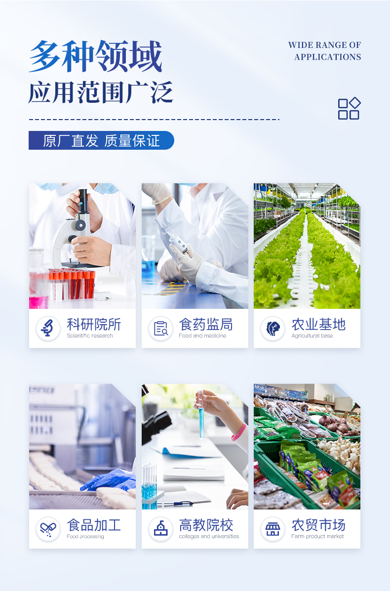 此外還可用于果蔬茶生產(chǎn)基地和農(nóng)貿(mào)批發(fā)銷(xiāo)售市場(chǎng)現(xiàn)場(chǎng)檢測(cè),餐館、學(xué)校、食堂、家庭果蔬加工前的安全速測(cè)等。