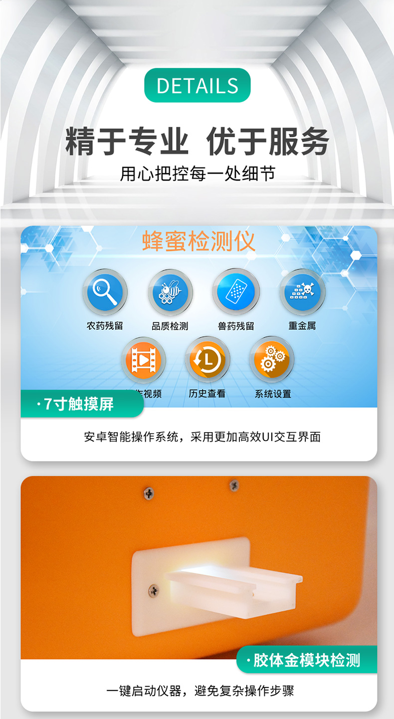 檢測項(xiàng)目:蜂蜜蔗糖、蜂蜜還原糖(葡萄糖和果糖)、蜂蜜羥甲基糠醛、蜂蜜酸度、蜂蜜中農(nóng)藥殘留、蜂蜜淀粉酶值、蜂蜜中脯氨酸、蜂蜜水分、蜂蜜糖分、蜂蜜中重金屬(鉛、鎘、汞)、蜂蜜中抗生素(氯霉素、四環(huán)素、磺胺類、呋喃類、喹諾酮類)、蜂蜜中灰分,可廣泛應(yīng)用于各類蜂蜜品質(zhì)的快速定量檢測。