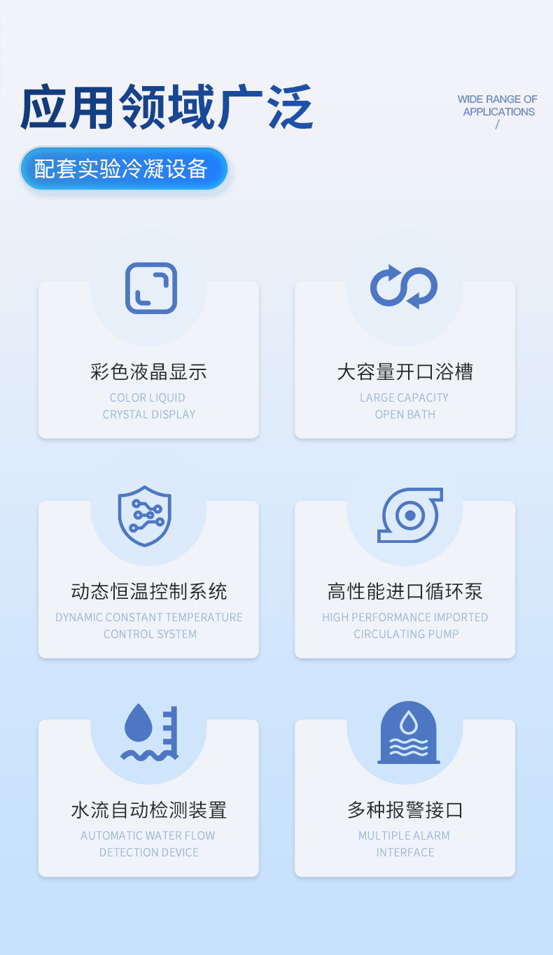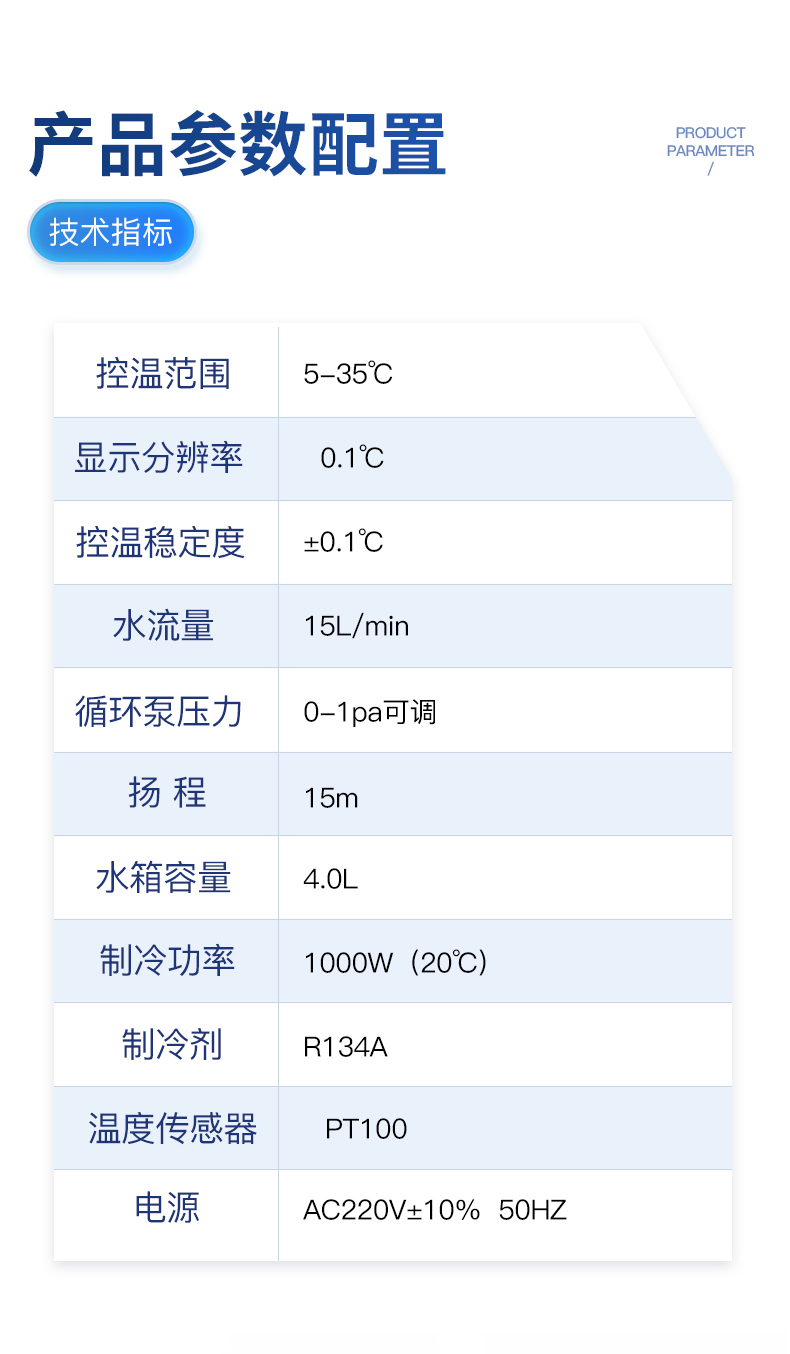 | 1.制冷量達(dá)3000w; | 2.體積緊湊,長壽耐用,操作便捷; | 3.溫控精度可達(dá)士0.3℃; | 4.激光冷水機(jī)智能溫控器具有兩種溫控模式,適用于不同的使用場合;有多種設(shè)定和故障顯示功能; | 5.具有多種報(bào)警保護(hù)功能:壓縮機(jī)延時(shí)保護(hù)、壓縮機(jī)過流保護(hù)、水流保護(hù)、溫度超限報(bào)警; | 6.可選配10-48m各種揚(yáng)程水泵,供水量供水壓力有保障; | 7.可選配加熱器和凈化水質(zhì)配置; | 8.可選多國電源規(guī)格,CE\RoHS、REACH認(rèn)證。 |