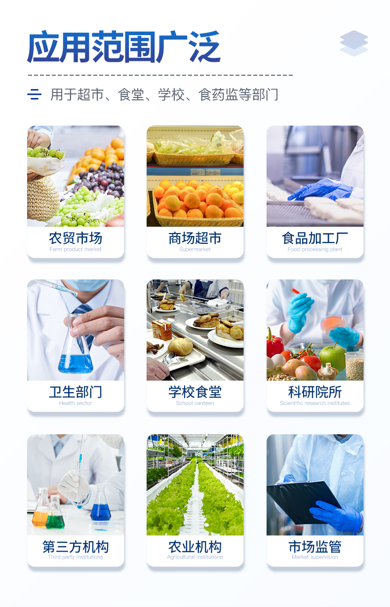廣泛應用于主要用于蔬菜、水果、茶葉、糧食、農(nóng)副產(chǎn)品等食品中有機磷和氨基甲酸酯類農(nóng)藥殘留的快速檢測;此外還可用于果蔬茶生產(chǎn)基地和農(nóng)貿(mào)批發(fā)銷售市場現(xiàn)場檢測,餐館、學校、2025-11-07