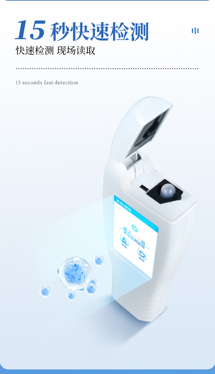 該設(shè)備為全新升級產(chǎn)品,大屏幕觸摸顯示屏,代替?zhèn)鹘y(tǒng)按鍵。操作采用生物化學(xué)反應(yīng)方法檢測ATP含量,ATP熒光檢測儀基于螢火蟲發(fā)光原理,利用“熒光素酶—熒光素體系”快速檢測三磷酸腺苷(ATP)。ATP拭子含有可以裂解細(xì)胞膜的試劑,能將細(xì)胞內(nèi)ATP釋放出來,與試劑中含有的特異性酶發(fā)生反應(yīng),產(chǎn)生光,再用熒光照度計(jì)檢測發(fā)光值,微生物的數(shù)量與發(fā)光值成正比,由于所有生物活細(xì)胞中含有恒量的ATP,所以ATP含量可以清晰地表明樣品中微生物與其他生物殘余的多少,用于判斷衛(wèi)生狀況。