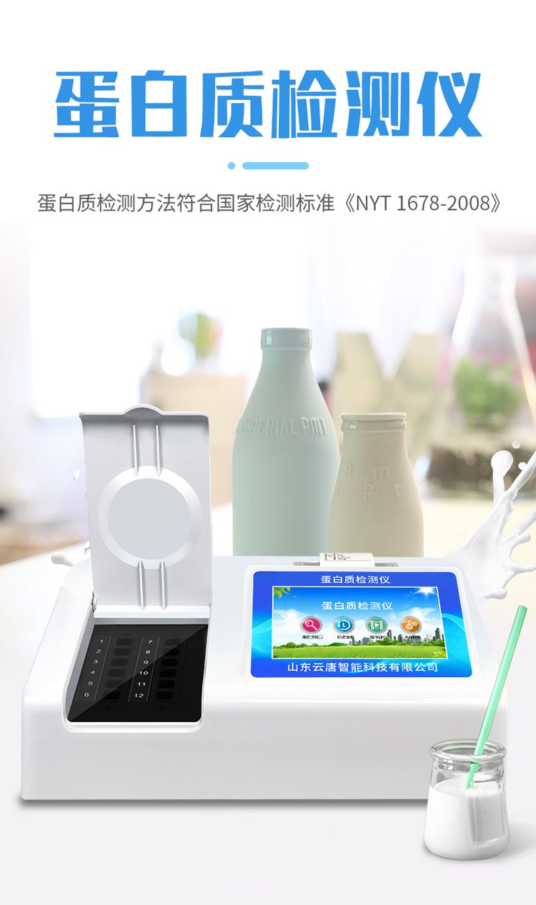 可快速檢測(cè)奶粉、牛奶及乳制品中的蛋白質(zhì),儀器預(yù)留其他項(xiàng)目檢測(cè)程序和端口,根據(jù)日后需求可方便的自主增加檢測(cè)項(xiàng)目。