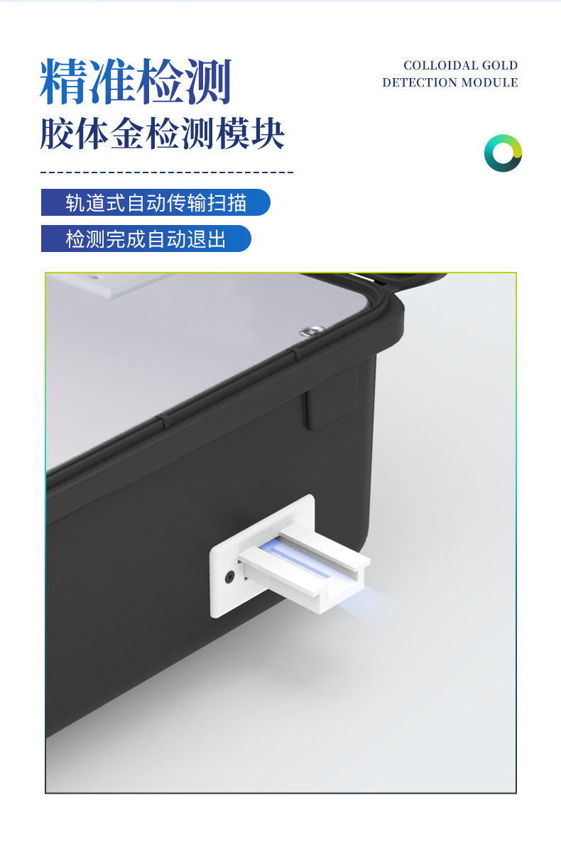 7、膠體金模塊檢測方式:軌道式自動傳輸掃描,檢測完成后自動退出檢測卡。