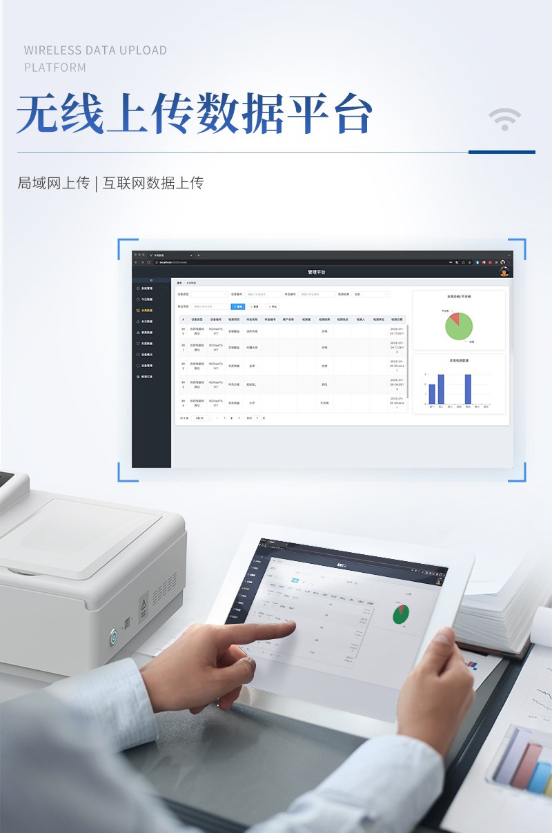 | 儀器采用手提一體化系統(tǒng)檢測(cè)技術(shù),將分光光度模塊、數(shù)字化管理模塊、無線通訊模塊高度集成于一體,可支持檢測(cè)60種食品安全檢測(cè)項(xiàng)目,同時(shí)預(yù)留升級(jí)檢測(cè)方法。 | 儀器檢測(cè)模塊標(biāo)準(zhǔn)化、智能化,檢測(cè)項(xiàng)目可隨意自由組合。檢測(cè)箱體內(nèi)置多個(gè)標(biāo)準(zhǔn)檢測(cè)單元,檢測(cè)模塊可以調(diào)整配置。 | 顯示屏幕:儀器采用10.1英寸豎向液晶觸摸屏顯,搭配運(yùn)行安卓智能操作系統(tǒng),主控芯片采用ARM Cortex-A7,RK3288/4核處理器,主頻1.88Ghz,操作方便,性能更強(qiáng)。 | 檢測(cè)通道:≥12通道;采用精密旋轉(zhuǎn)比色池設(shè)計(jì),使用同芯片同光源校準(zhǔn)精度,解決不同光源之間的誤差值,更加準(zhǔn)確**。(1-12通道間誤差0.1%,***:**202022821055.2) | 儀器光源:高精度進(jìn)口四波長(zhǎng)冷光源,每個(gè)通道均配置 410、520、590、630nm 波長(zhǎng)光源,標(biāo)配**的光路切換裝置,專利光路切換功能可實(shí)現(xiàn)64波長(zhǎng),并且所有檢測(cè)項(xiàng)目可實(shí)現(xiàn)所有通道同時(shí)檢測(cè)。 | 設(shè)備可一鍵校準(zhǔn),自動(dòng)保存校準(zhǔn)數(shù)據(jù),自動(dòng)對(duì)比校驗(yàn),得到精準(zhǔn)光源,采用Android SP存儲(chǔ)數(shù)據(jù),光源數(shù)據(jù)永不丟失,方便每一次使用。 | 通訊接口:配備無線通信模塊、4G(APN)通訊模塊、藍(lán)牙傳輸,同時(shí)具有雙USB接口以及RJ45網(wǎng)線接口,可以多方式實(shí)現(xiàn)數(shù)據(jù)保存及數(shù)據(jù)傳輸。 | 存儲(chǔ)方式:支持U盤存儲(chǔ),標(biāo)準(zhǔn)USB接口,免驅(qū)動(dòng)安裝。檢測(cè)結(jié)果存儲(chǔ)容量20萬條以上,可生成Excel表格進(jìn)行拷貝,并具有登錄保護(hù)功能。 | 智能化操作系統(tǒng): | 1、操作系統(tǒng):儀器可在同一檢測(cè)界面自動(dòng)對(duì)應(yīng)相關(guān)檢測(cè)通道,一次性選擇1-12個(gè)樣品名稱,無需退出界面,節(jié)省操作時(shí)間。并可以對(duì)每個(gè)通道屬性和樣品信息單獨(dú)進(jìn)行編輯,例如送檢單位、人員,檢測(cè)人員等,打印時(shí)勾選打印顯示。 | 2、數(shù)據(jù)集成系統(tǒng):設(shè)備首頁(yè)自動(dòng)匯總分析檢測(cè)數(shù)據(jù),包含:周檢測(cè)數(shù)據(jù)、月檢測(cè)數(shù)據(jù),全部檢測(cè)總數(shù)量,均包含檢測(cè)總數(shù),合格數(shù),不合格數(shù),以及相關(guān)柱形分析圖,各項(xiàng)檢測(cè)數(shù)據(jù)一目了然,無需電腦查詢,更加快捷直觀。 | 3、數(shù)據(jù)庫(kù)系統(tǒng):十幾項(xiàng)數(shù)據(jù)庫(kù)分類管理儀器:包含項(xiàng)目類型、項(xiàng)目數(shù)據(jù)、檢測(cè)數(shù)據(jù)、歷史記錄、國(guó)標(biāo)信息、曲線信息、采樣信息、檢測(cè)信息、受檢信息、復(fù)核信息、圖表信息、光源校準(zhǔn)信息、打印樣式信息、樣品庫(kù)信息等等,數(shù)據(jù)庫(kù)之間互相協(xié)調(diào)聯(lián)動(dòng)保證數(shù)據(jù)的真實(shí)完整性。同時(shí)產(chǎn)品數(shù)據(jù)庫(kù)以及歷史檢測(cè)記錄支持一鍵檢索功能。 | 4、限量規(guī)判系統(tǒng):具有限量查詢、添加物質(zhì)合規(guī)判定系統(tǒng)。檢測(cè)出結(jié)果后,系統(tǒng)自動(dòng)調(diào)用系統(tǒng)數(shù)據(jù)庫(kù)中相關(guān)國(guó)標(biāo)進(jìn)行比對(duì)判定,客觀顯示判定結(jié)果是否合格。 | 5、項(xiàng)目預(yù)設(shè)系統(tǒng):儀器具有任務(wù)預(yù)設(shè)模塊,一鍵提前預(yù)設(shè),給出方便快捷的新檢測(cè)方案,每一個(gè)任務(wù)分別可以設(shè)置不同的樣品、批次、編號(hào)、來源、備注、抽樣信息、檢測(cè)信息、受檢信息、復(fù)核信息等更多信息。樣品送檢時(shí)一鍵調(diào)取保存信息,并可多次調(diào)取,大大提高檢測(cè)效率。 | 6、數(shù)據(jù)監(jiān)管系統(tǒng):同步對(duì)接監(jiān)管平臺(tái),數(shù)據(jù)可局域網(wǎng)和互聯(lián)網(wǎng)數(shù)據(jù)上傳,檢測(cè)結(jié)果可選擇直接傳至食品安全監(jiān)管平臺(tái)。進(jìn)行區(qū)域食品安全監(jiān)管及大數(shù)據(jù)分析處理與數(shù)據(jù)統(tǒng)計(jì),檢測(cè)區(qū)域食品安全長(zhǎng)短期動(dòng)態(tài),達(dá)到食品安全問題預(yù)估、預(yù)警。 | 7.1、全新打印系統(tǒng):內(nèi)置全新打印機(jī),新創(chuàng)自定義打印方式,可按需靈活勾選控制:二維碼,抽樣信息、檢測(cè)信息,受檢信息、復(fù)核信息、抽樣日期、檢測(cè)日期等信息的打印。 | 7.2、A4紙版本報(bào)告打印功能(可選配):設(shè)備擁有兩種結(jié)果展示方式,可以自動(dòng)生成A4打印模板和小票打印模板兩種樣式,可通過WiFi及網(wǎng)線等方式鏈接外置打印機(jī)可進(jìn)行打印。 | 供電模式:儀器交直流兩用,直流12V供電,可連接車載電源,可配6ah大容量充電鋰電池,電量可實(shí)時(shí)顯示,方便戶外流動(dòng)測(cè)試。 | 儀器具備遠(yuǎn)程升級(jí)功能,可定向分客戶分儀器更新,開機(jī)后自動(dòng)更新,并可持續(xù)性免費(fèi)更新系統(tǒng)版本,無需像傳統(tǒng)產(chǎn)品返廠更新,節(jié)省時(shí)間及人力成本并避免了物流運(yùn)輸返廠升級(jí)導(dǎo)致設(shè)備損壞的潛在風(fēng)險(xiǎn)。 |